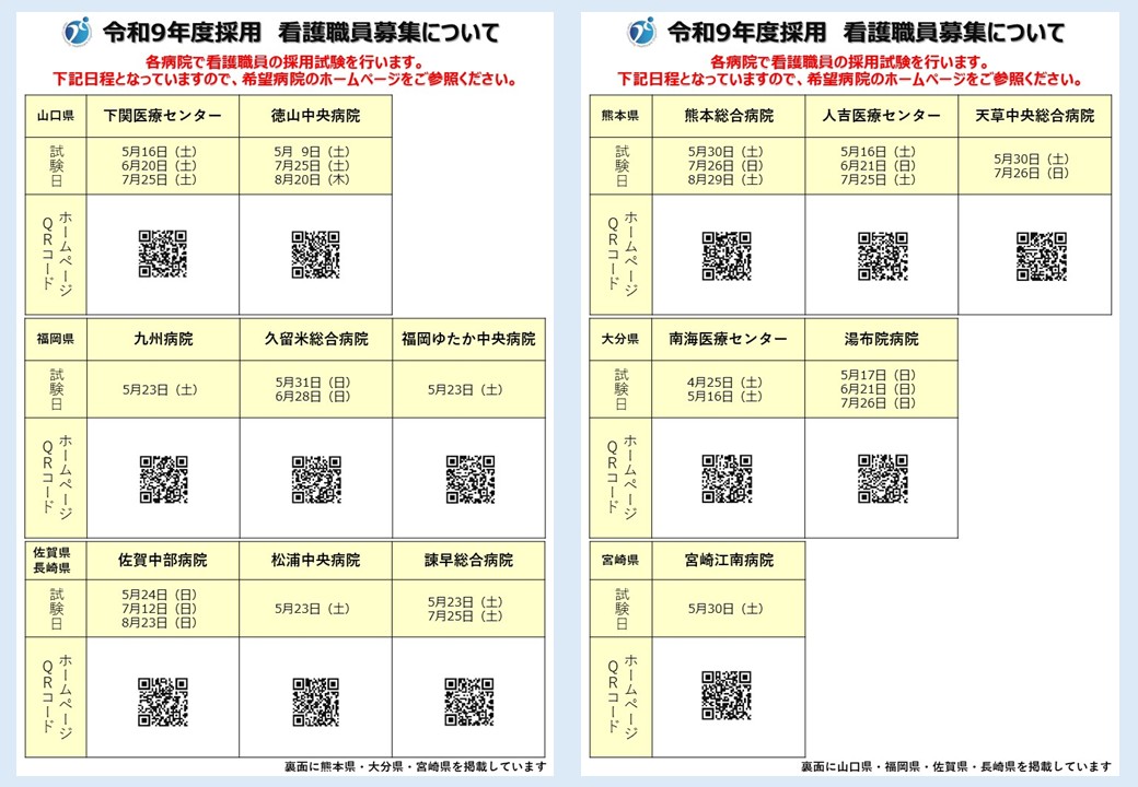 令和9年度 看護職員採用試験の日程