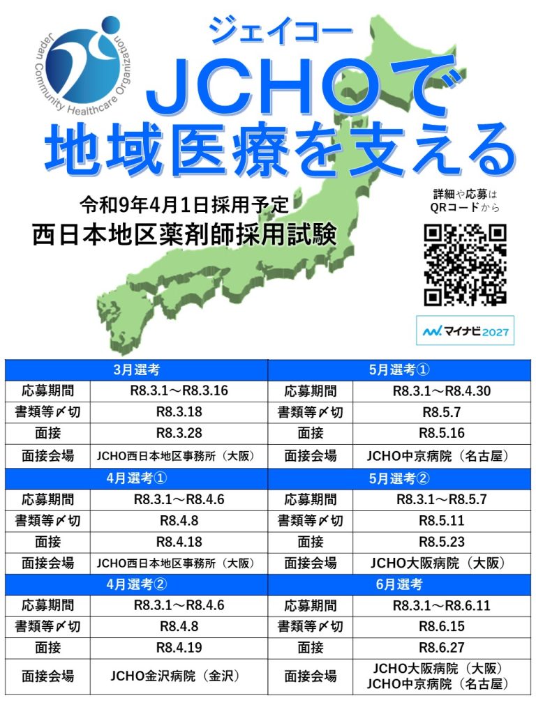 面接会場(希望制) JCHO中京病院(名古屋市)、JCHO大阪病院(大阪市)